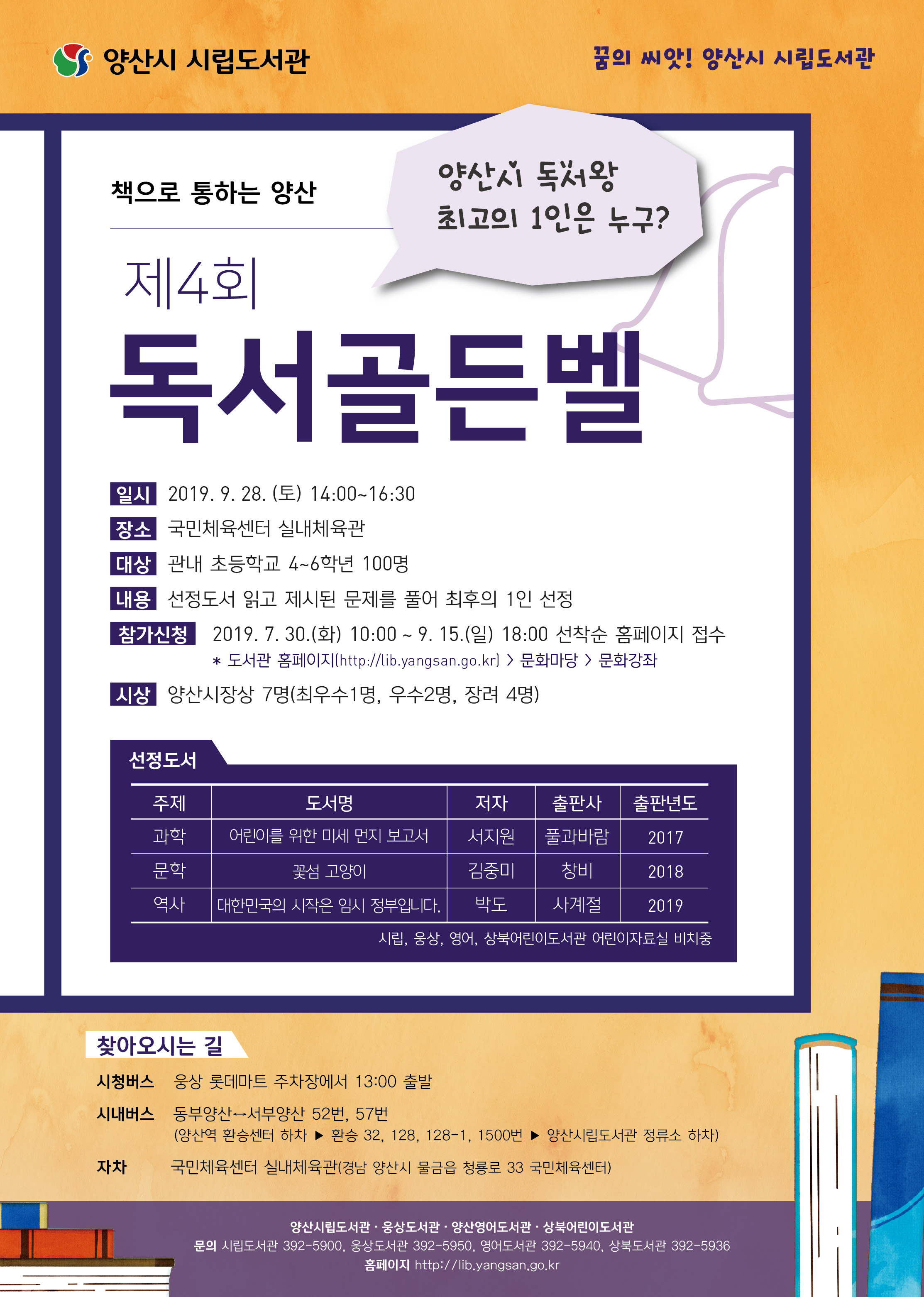 제4회 독서골든벨 안내(양산시립도서관 주관, 4~6학년 참여가능)